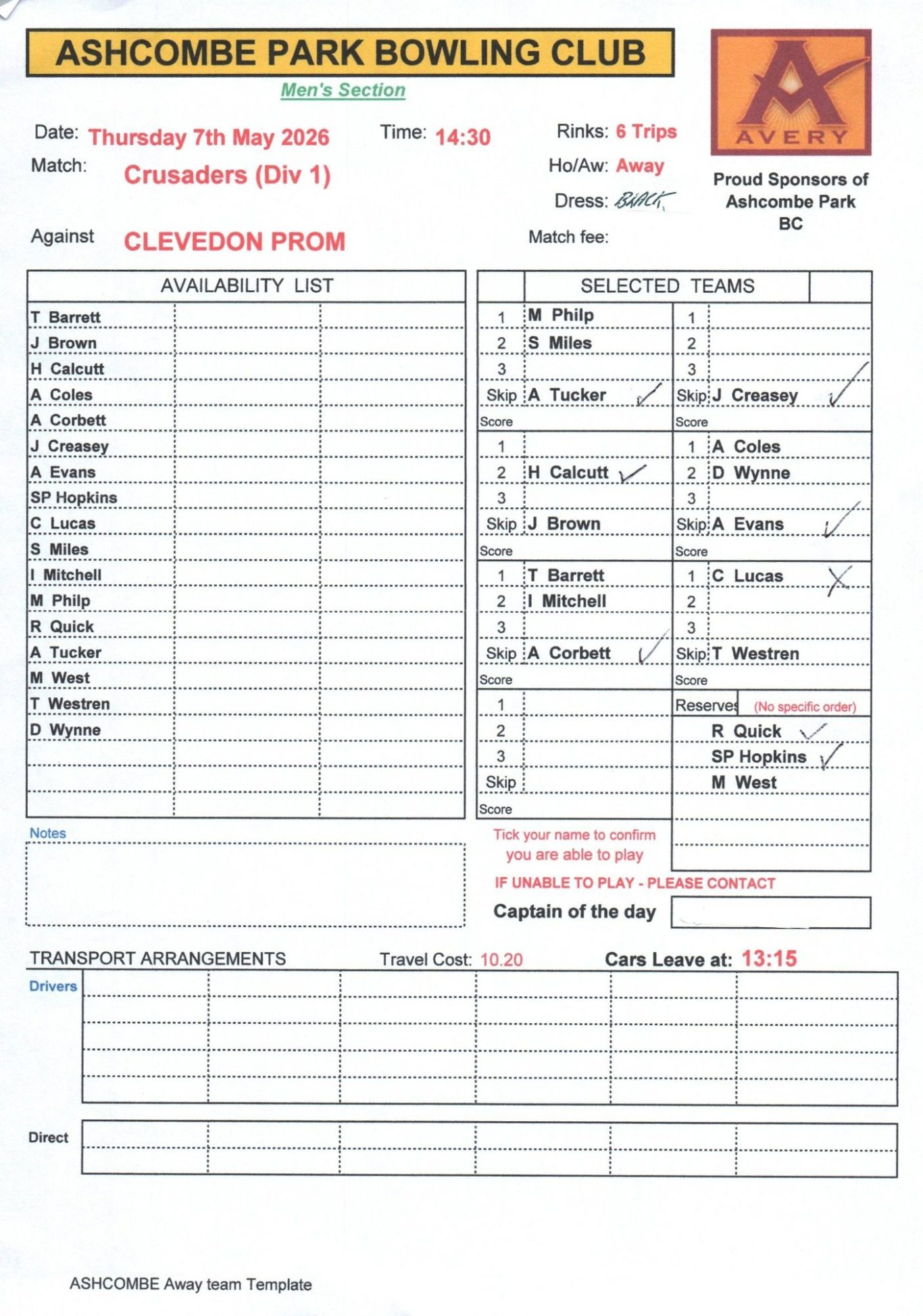 Selection sheets will be shown on this web page under each game, usually added on Tuesday mornings. Results will be added here as well, if available.