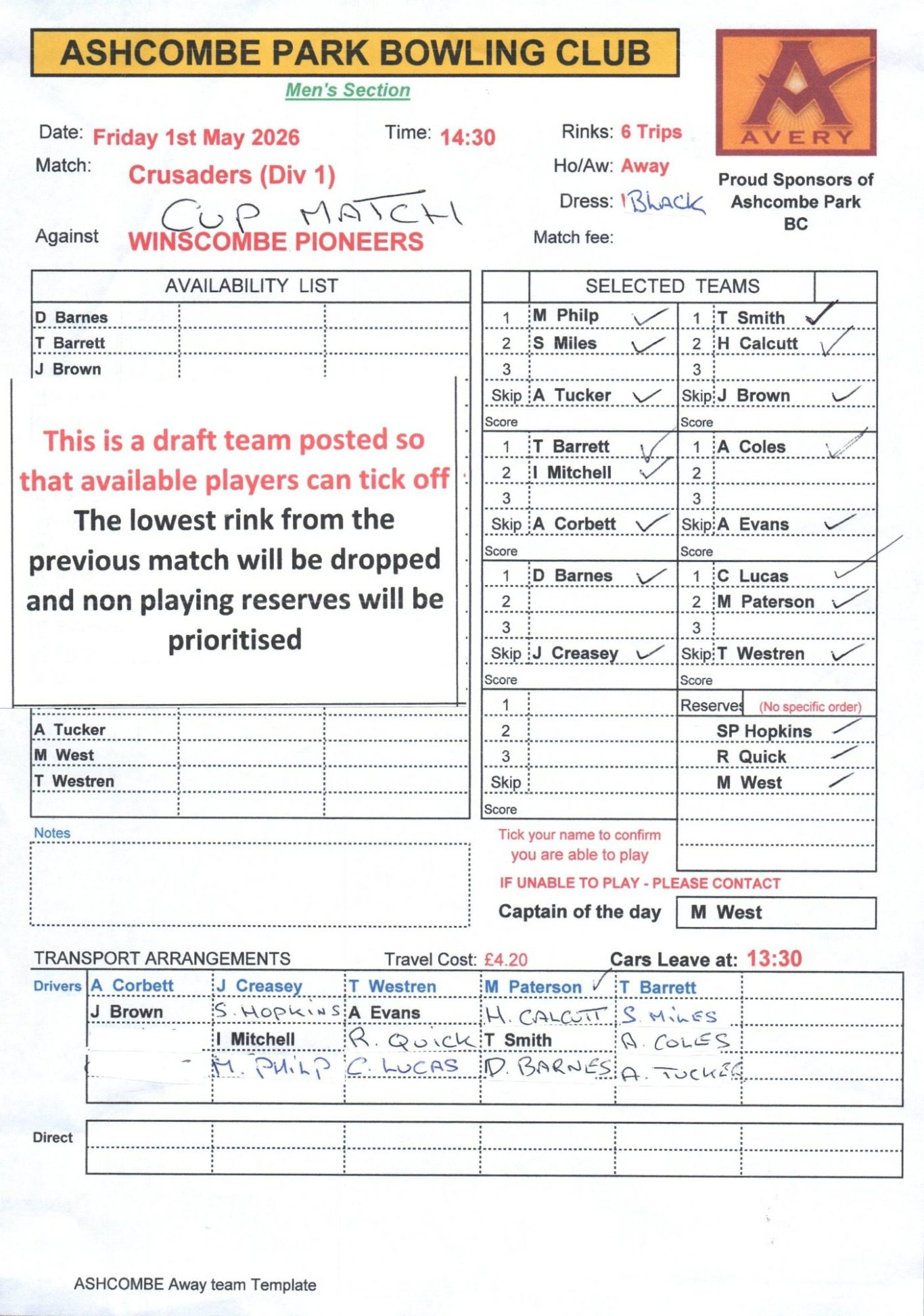 Fri 1 May - 2.30 - A - KO Cup - Winscombe Pioneers - 6T