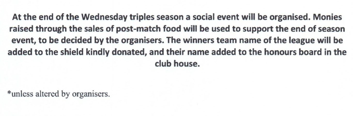 At the start of the season players form their own teams of 4 or 5 players in order to have a team for each Wednesday evening competition.